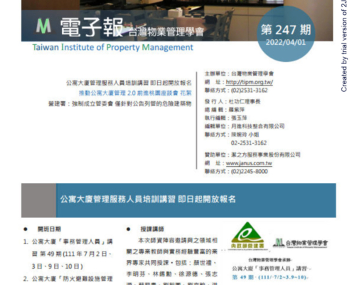 https://www.tipm.org.tw/wp-content/uploads/2023/04/台灣物業管理學會-20220401電子報247期.jpg