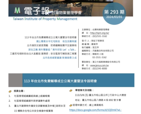 https://www.tipm.org.tw/wp-content/uploads/2024/02/台灣物業管理學會電子報293期.jpg
